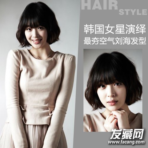 萌萌哒的雪莉的这款蛋卷头发型,空气感齐刘海很好地打破了脸型的比例,让脸看上去更加小巧,五官更加精致,及肩巧克力色蛋卷头更衬托出她可爱妹妹的气质。