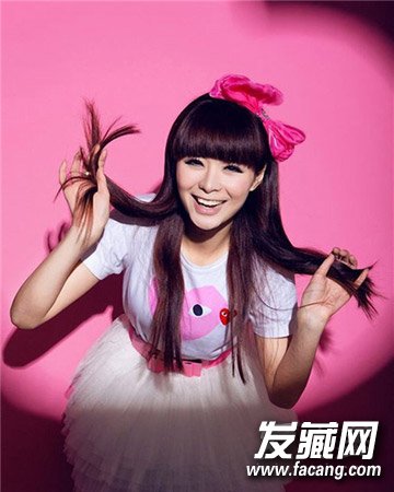 沈梦辰发型中的这款舞台造型,色彩明亮的蝴蝶结造型成为了这款简单直发发型的“点睛之笔”。 这款蝴蝶结流行美发饰搭配的甜美直发发型也为沈梦辰塑造了完美的舞台形象。
