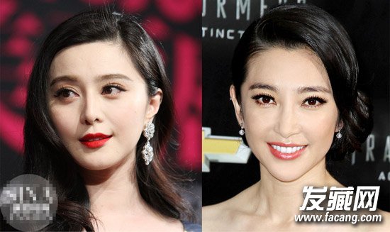 范冰冰的复古卷发搭配大红唇很是惊艳,展现十足女人味。而李冰冰的盘发造型则稍显清淡一些,但更加优雅轻盈。