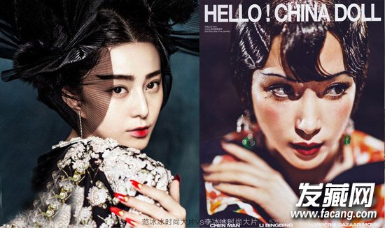 范爷一直是中国风的代表,中分直发盘发,搭配夸张扇形发饰,将中国元素展现出来。李冰冰的卷刘海也很复古,瞬间回到上个世纪。