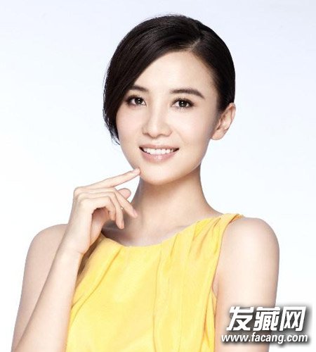 早期宋佳走清纯风,头发侧分盘成简约的发髻,没有其他累赘发型设计,十分的干净利落,简约不失温婉。