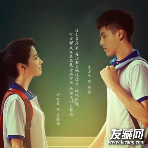 女神与男神的组合虽然年纪相差甚远,但高颜值还是颇为让人赏心悦目。刘亦菲简单松散的高扎马尾,清甜可人,吴亦凡两边清爽短发,中间稍长的刘海帅气有型,再丑的校服都被他俩穿出了梦幻感!