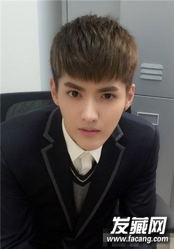 运用电发,制造出略微的卷度,然后再用发型产品进行固定,这样在发顶处的头发就会蓬松坚挺,头发集中在中部,两边削短,清爽又帅气,配合完美脸型,赞爆了!