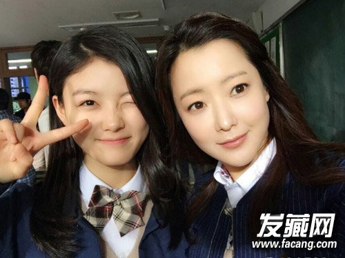 日前,阔太金喜善复出拍戏,饰演高中生妈妈,与女儿同上学,剧照曝光,金喜善的童颜可是获得一片肯定呢,甜美学生妹造型,深棕色的披肩发甜美清纯,与旁边的妹子完全看不出来有将近20岁的年龄差。