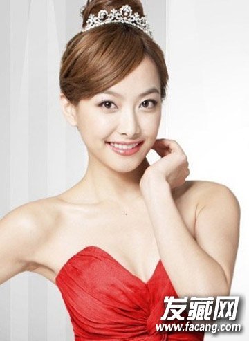 人气女星宋茜独具一种清新甜美的气质,因此公主风的丸子头十分适合她,三七分的刘海,露出饱满的额头和清秀的眉眼,头发盘成丸子状,配上一顶皇冠发饰,公主范十足,栗色的染发更是将她衬得肤白胜雪。