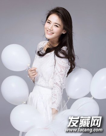 清爽的露额发型加上气质的不对称长卷发,整个画面以白色为主打造出清纯与气质感来。