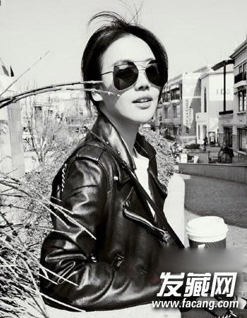 偶尔换一下风格也是不错的哦,一身帅气的机车装搭配上气质的低马尾,搭配上墨镜帅气迷人。
