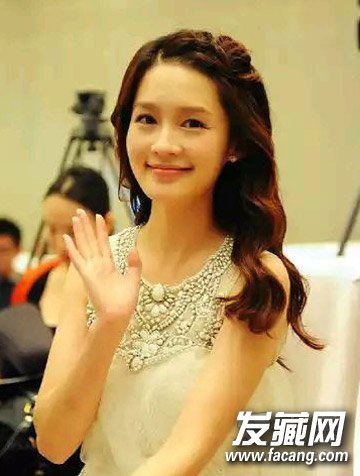 生活中的甜美编发发型,将刘海变成麻花辫,向后固定,露出额头简单清爽,披肩卷发搭配白色连衣裙,甜美清纯。
