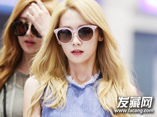 允儿自出道以来都是自然的发色,清新甜美少女风,这次的首度金发Look让人眼前一亮,也深得粉丝欢心。浅金色的染发靓丽抢眼,从发中开始烫出自然微卷是允儿一贯的风格。