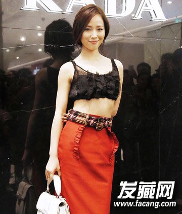将头发扎起来,弄个松散的盘发,小试性感风,蓬松刘海沿着脸颊而下,很好的修饰了脸型,清纯不失妩媚。