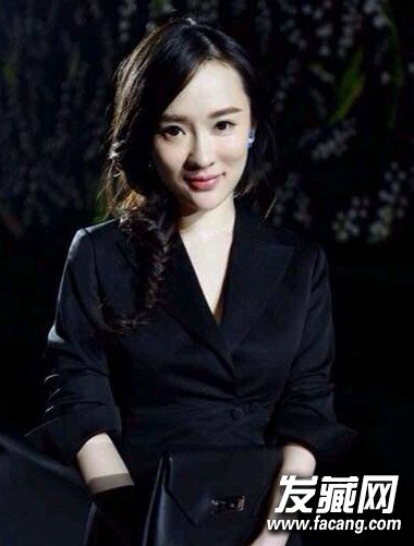 霍思燕产后复出造型,侧编鱼骨辫搭配黑西西装,甜美干练,侧编发造型很好的遮住了肉肉脸。