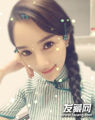 李小璐私照发型,麻花辫清新甜美,空气感十足的刘海增加空灵气质,一条辫子垂在肩头,好一个小镇姑娘!