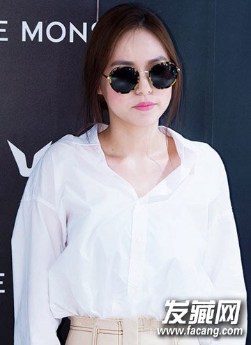 闵孝琳这个发型本没错,脸颊两侧散下来的秀发其实是起到瘦脸效果的,但是!她选错了墨镜!今年圆形镜片的墨镜真的很流行,但圆脸的姑娘真心不适合啊!像个胖胖的熊猫,脸蛋显得更圆更大了。