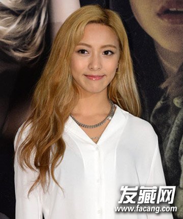 F(x)组合成员Luna长着一张心形脸,一侧发量重的波浪发梳法能修饰脸型,但过厚的发量有点不够精致。再有就是这个金棕发色和肤色特别靠,把脸衬托得很晦暗。