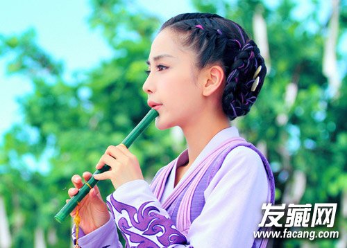 但是这款盘发就显得有些突兀了,虽然将彩色发绳编入三股辫中很时尚,但并不是很像汉代女子的装扮。
