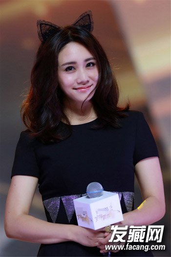 辣妈也有卖萌时刻,这样一款中分卷发发型,很好的修饰了她的圆脸型,瘦脸更时尚,搭配猫耳朵发饰可爱减龄。