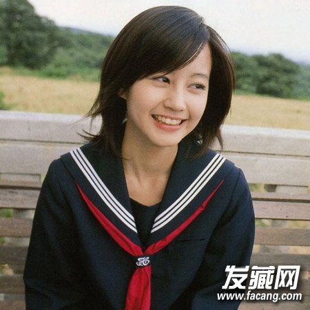 拍摄校服风格的照片是堀北真希最擅长也是最传神的了。侧分简单短发,白净的肤色,五官清秀,清新感爆棚。