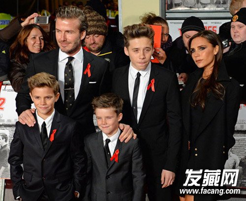 2013年12月,一家人出席红毯。贝嫂左侧偏分大卷发女人味和女王味十足。