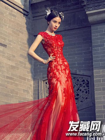 侧面看是不是有点像中国娃娃?双发髻造型感觉很是喜庆,一身红装更是迷人,这样的女神不娶回家怎么放心呀!