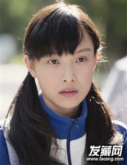 典型的校园女神扮相,穿着蓝白校服,细碎的平刘海,扎着双马尾,看起来寡淡清新,马尾辫自然的卷度显得自然大气。虽然短发的造型更为女神系,但是这款双马尾也是很有倪妮个人特色的哟。