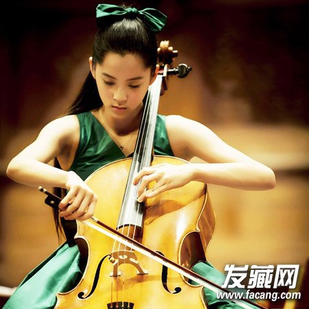 无刘海马尾搭配绿色蝴蝶结,与礼服同质感的发饰为整个造型添彩,简单的马尾 辫更能突显娜娜的文艺气质。