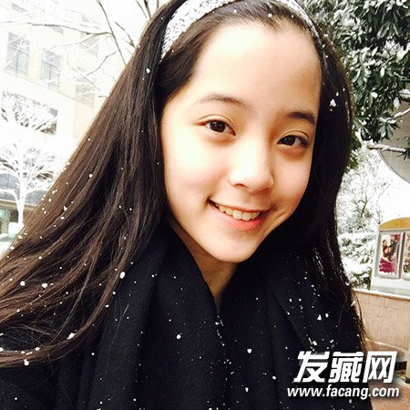 一头柔顺的长发直发发型,染成了红棕色系的发色,既能增添一定的时尚感,又不 会显得过分招摇,白色蕾丝发箍俏皮可爱,清甜的笑脸,更显阳光可人。