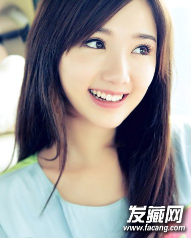 毛晓彤清新长直发发型,斜刘海长直发十足校花范,甜美笑容极具感染力。