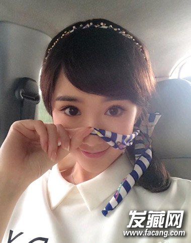 天生娃娃脸的毛晓彤生活中造型也很时尚呢,斜刘海马尾辫扎发搭配条纹发带和钻石发箍,可爱清纯,还有点小俏皮感。