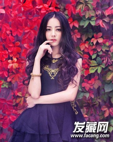 大卷的长发,以中分的方式全都散发在前面, 女神气质范十足。