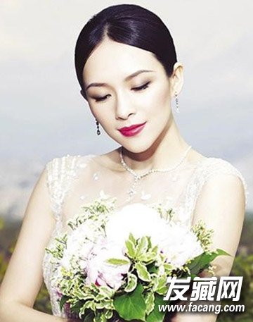 长相知性而又端庄的章子怡,婚纱照最是温柔动人了,建安中分盘发,白色透视婚纱,不需要过多头饰修饰就已经美cry!