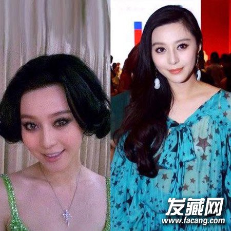 早期的范冰冰发型也是花样百出,难看。侧分的大卷,更显妩媚。