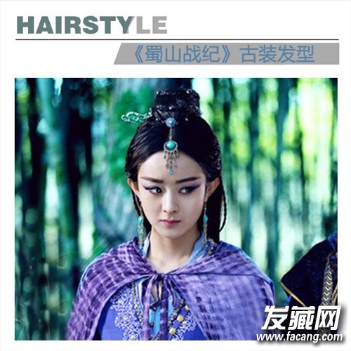 剧中赵丽颖的造型多为这款低发髻长发,中分的长发露出全额,戴上发簪,在中间发线位置戴上翠蓝色发饰和耳环,冷色系的配饰能衬托出戏中人物高冷气质。