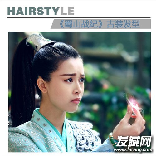 这款束发同样也是武打角色的发型,长发全部束起,长发马尾垂直,配上束发带,简单的束发显得清纯美观。