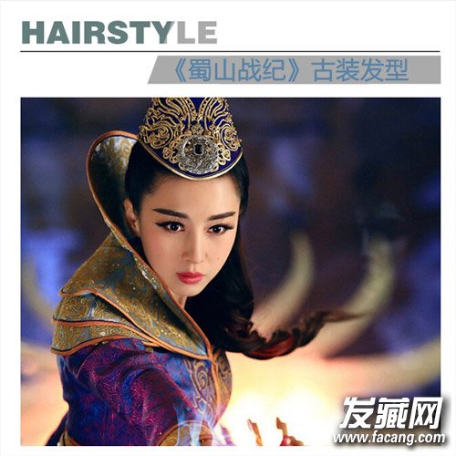 这款剧中的古装发型,长发盘成高髻,戴上大的头饰固定束紧头发,长发卷成束,非常利落。