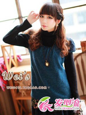淑女气质的卷发发型,优美的秀发线条,让你对自己可以充满自信。耳际的头发利用编发形成盘发发型,显得女人味十足而且很利落。齐刘海和散落在脸颊的发丝呈现出小脸效果。