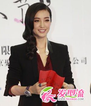 喜爱中性风格的MM可以参照下李冰冰是这身装扮噢!充满女人味的风情侧肩长发,搭配小帅气的黑色修身小外套,很有个性。