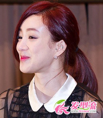 同样是款扎发,余留了斜刘海,马尾扎在低端位置,很有韩式优雅范儿,搭配赫本风裙装,更显知性的高贵气质。