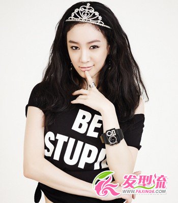 中长发做出轻微的卷曲弧度,以此来增加发量的蓬松感,利用皇冠将刘海挽在后面,变身成个性十足的小公主。