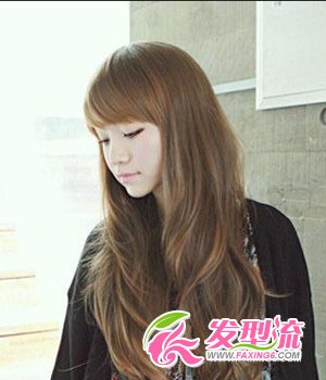 飘逸的长发,营造出微卷的弧度,看起来更加自然,同时也可以丰富造型感。同样是采用齐刘海发型,带着萌萌的味道,是女生卖萌、装嫩必备发型噢!亚麻色的发色,是大热的流行发色,时尚感十足,打造都市潮女范儿。