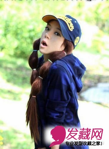 双马尾很可爱,加上今年韩国女生流行的葫芦结更显可爱,大风季节这样的发型让头发丝毫不凌乱。