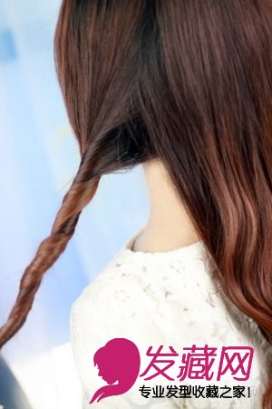 1.左右分区,将左边的头发不断旋转成一束。