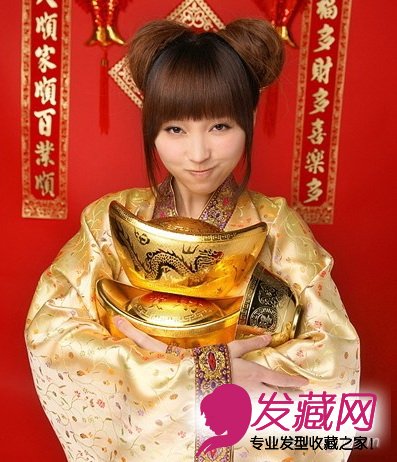 精灵的小女生就可以选择一款双花苞头,搭配齐刘海萌萌的非常可爱,拜年的时候,一定会给人一种“送财女童”的感觉,给亲人和朋友都送去喜庆的祝福。