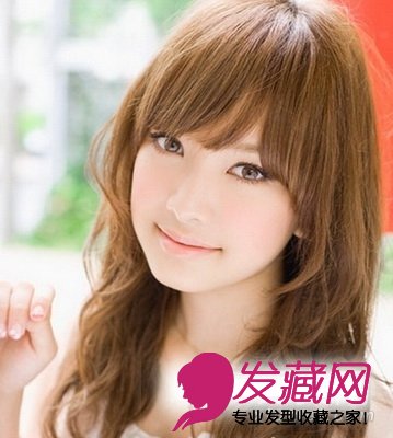 亚麻色染发发色把皮肤衬托得更加白皙。齐刘海的造型适合长脸脸型的女生。