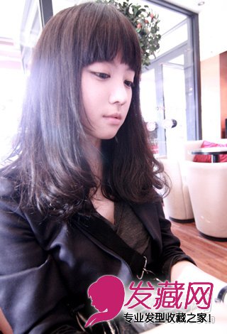 齐刘海的中长发烫发发型,只需在发尾做出细微的不规则的小卷,就让这款中长发变成不一样的时尚烫发发型。齐刘海与发尾都是非常重要的修饰脸型的细节。