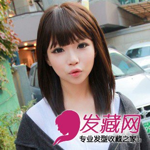 一款超显甜美的中长发发型哦,自然的齐碎刘海以及自然的中长发的长度,无一不透露着女生的清纯感,棕色的发色低调又显时尚。