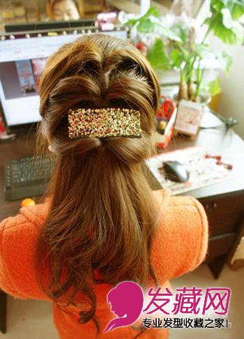 步骤6: 或者将下面的头发散发,这样夹个横发夹也很不错呢。