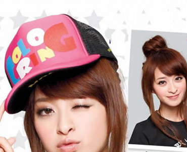 一直很流行的街头棒球帽造型,重点就是故意把帽子 戴得高高的,稍微侧一边才够有型,只要把头发扎成一个丸子头,就可以拥有此造型。