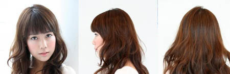 凌乱随意的发丝披落在脸颊两侧,体现出少女纯真清秀的一面;干净而奢华的微卷发型线条与极富动感的浅褐色混搭 体现出人性快乐活泼的一面哦。
