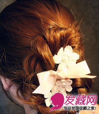 完成效果图:选择一款自己喜欢的发饰搭配在发型上,这样一款既蓬松又优雅浪漫的时尚编发盘发发型教程就这么完成了,是不是很唯美浪漫迷人呀。你学会了吗?