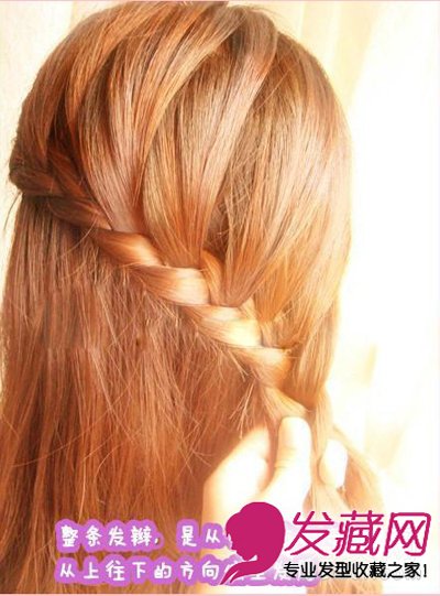 整条发辫,是从左至右的方向,从上往下的方向编织发尾。